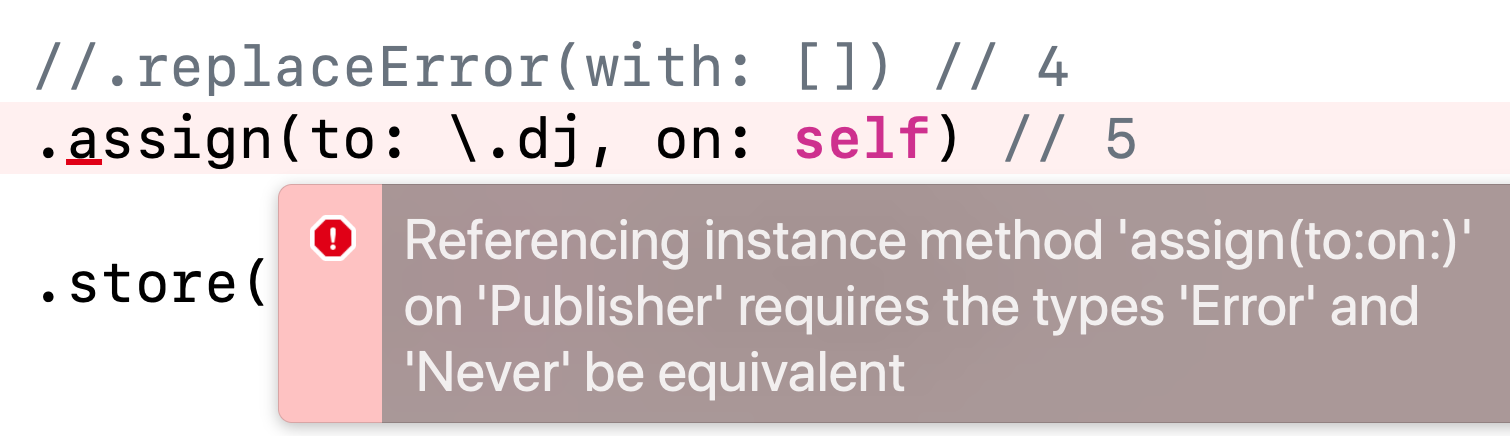 그니까 ㅇ ㅑ 니가 assign 참조하고싶으면(호출하고 싶으면) Error랑 Never랑 타입이 같아야댐