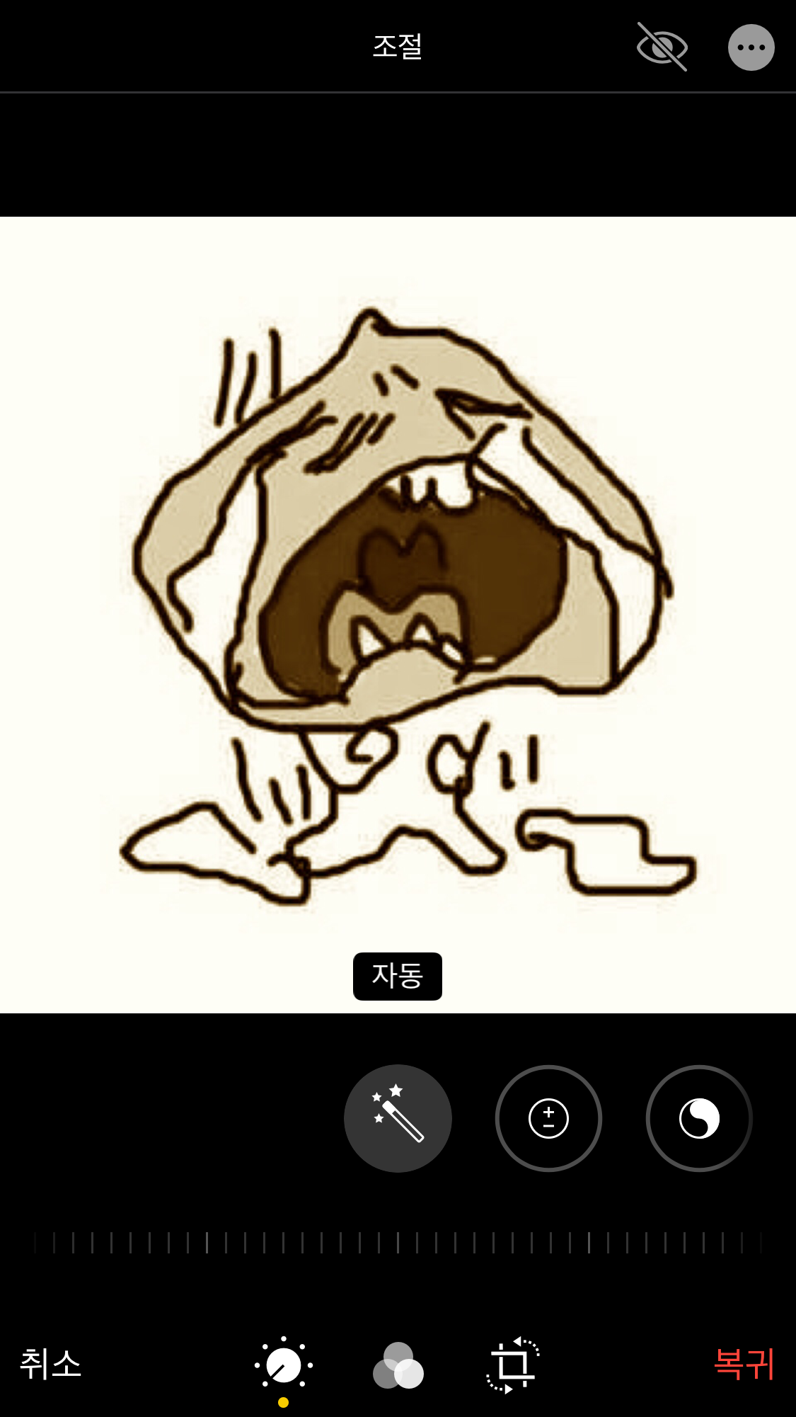 편집을 눌렀을 시 오른쪽 아래의 복귀가 활성화됩니다. 복귀를 누르면 원본 이미지로 다시 돌아가죠.