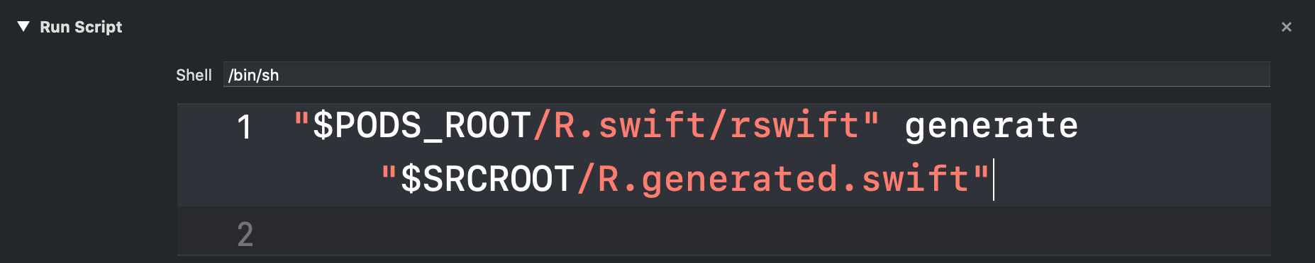 3. "$PODS_ROOT/R.swift/rswift" generate "$SRCROOT/R.generated.swift" 입력