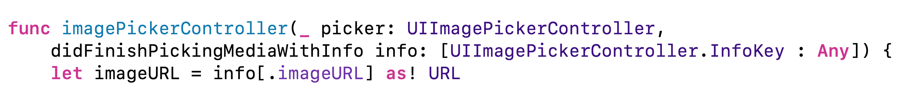 저는 UIImagePickerViewController를 사용할거라서 info에서 바로 imageURL가져올거