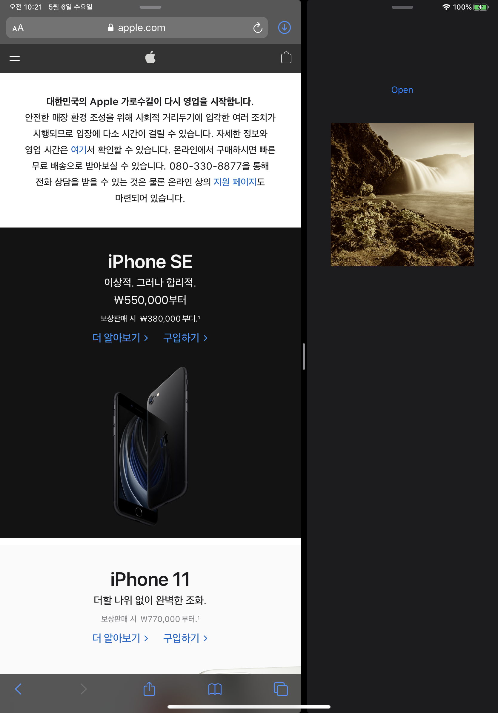 Q : 아..그냥 간단하게나마 Split View에서 특정 화면이 어떻게 보이는지 궁금한데..