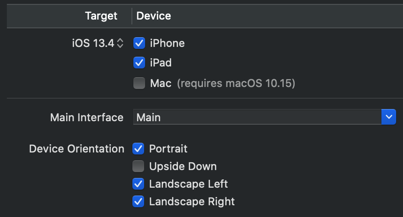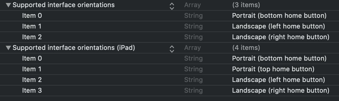 Supported interface orientations (iPad)가 있음. 여기서 뭐 추가할거 추가하고 뺌