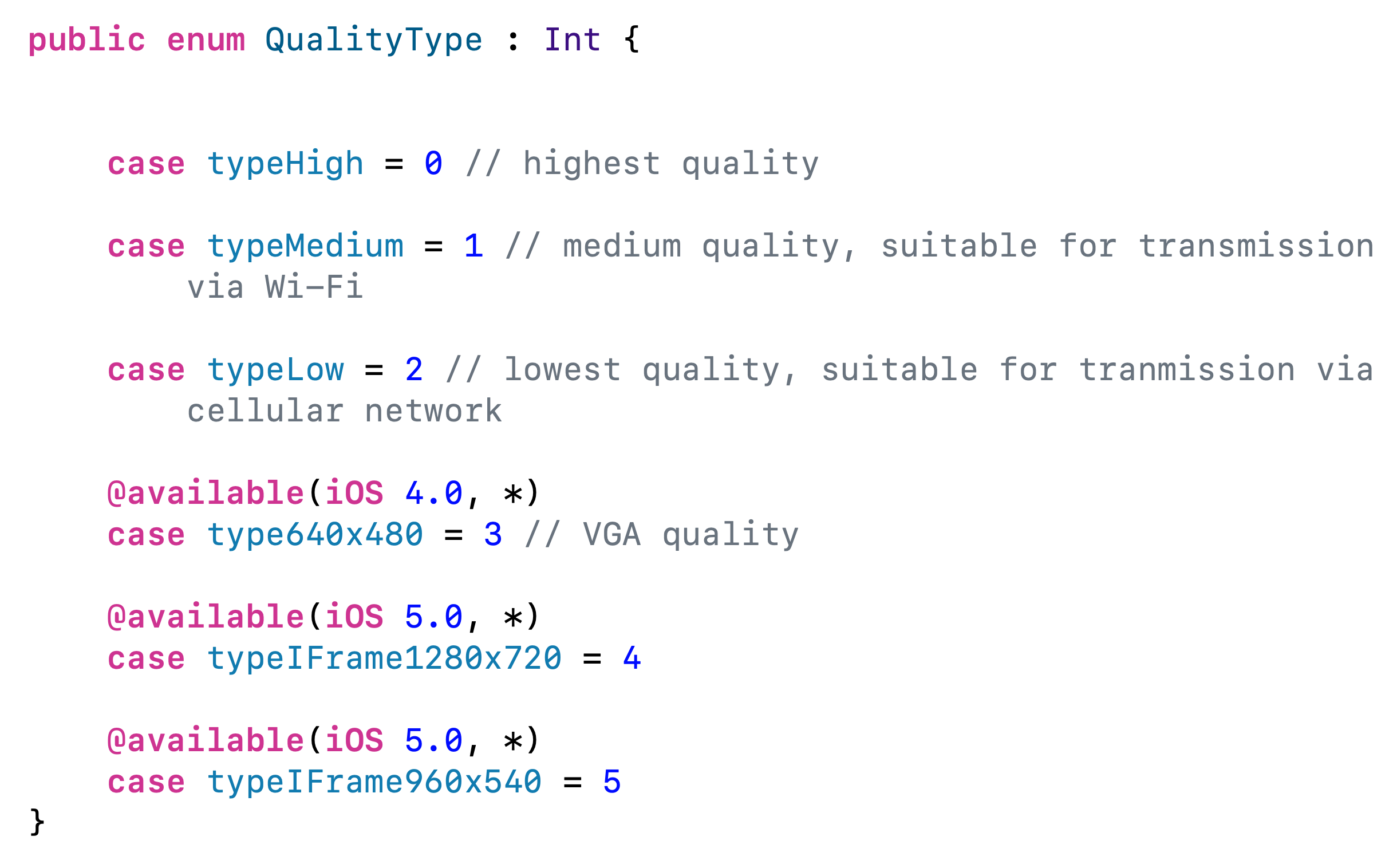 QualityType을 넣을 수 있는데, 기본값은 typeMedium입니다.