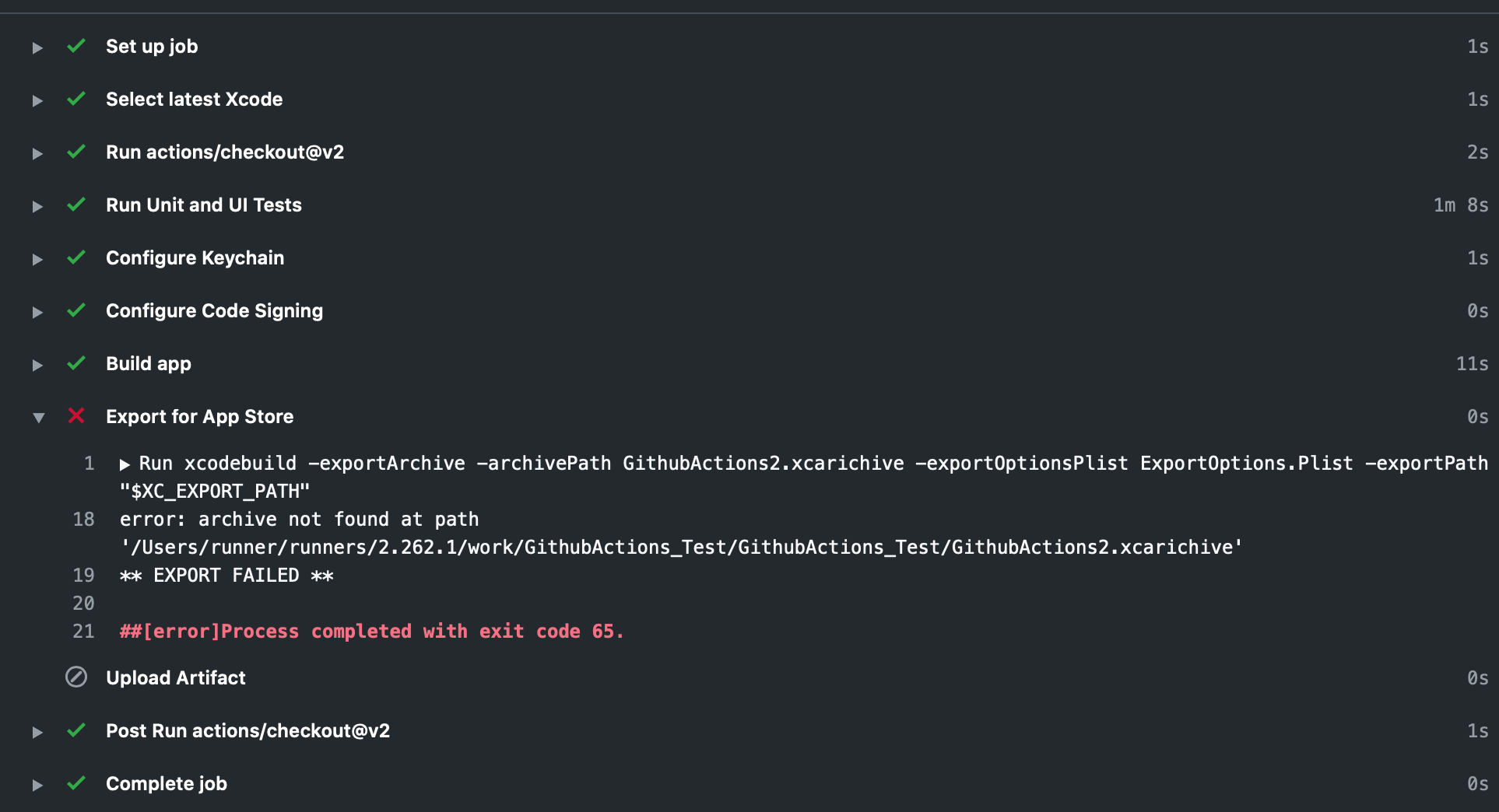 xcodebuild -exportArchive -archivePath GithubActions2.xcarchive -exportOptionsPlist ExportOptions.Plist -exportPath "$XC_EXPORT_PATH"