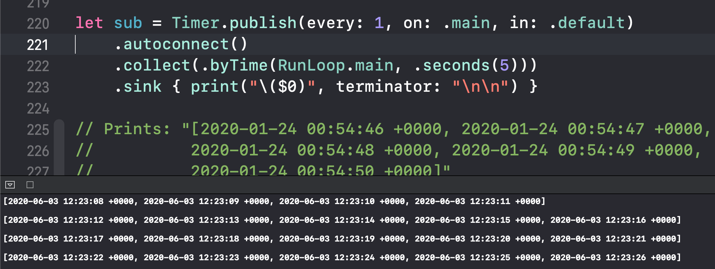 이 stride가 끝나면 publisher는 수집한 element의 배열을 내보내게 됩니다.