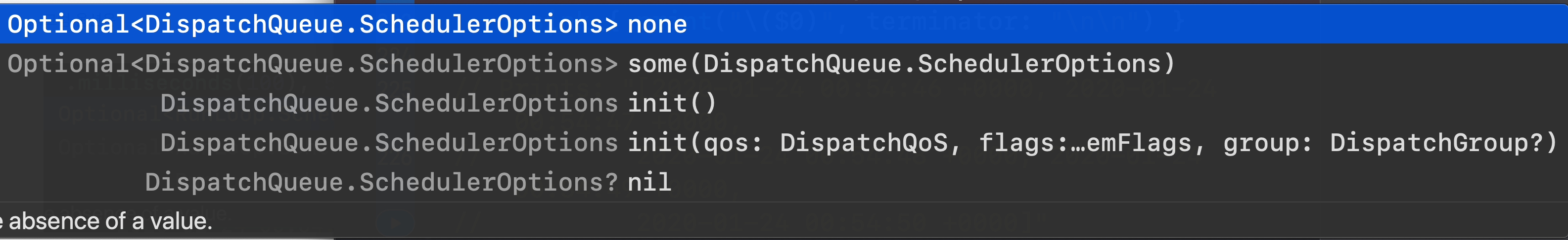 DispatchQueue의 SchedulerOptions을 넣을 수 있게 됩니다. 각자 자기가 지정한 SchedulerOptions을 하고싶은대로 넣으면 됩니다.