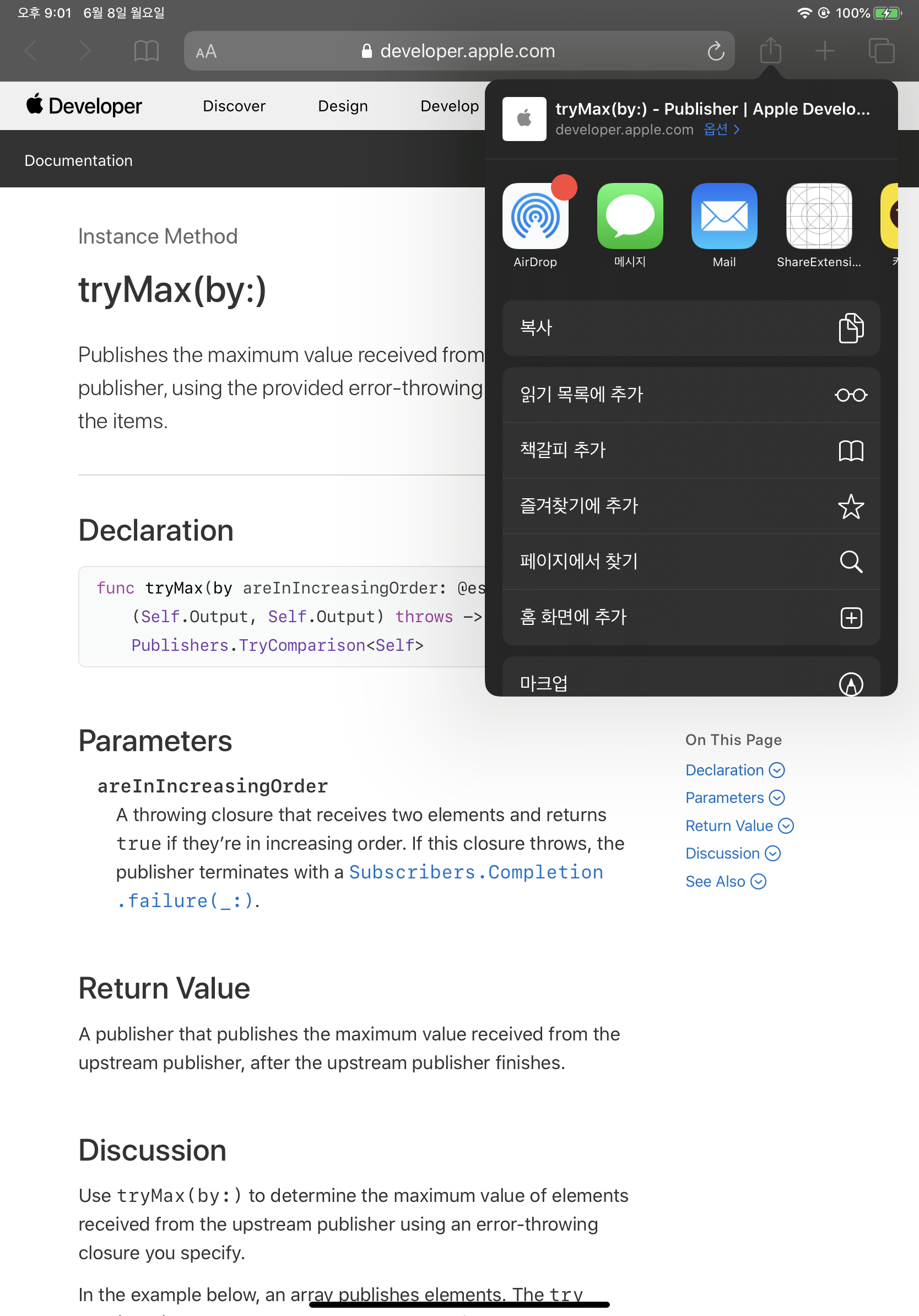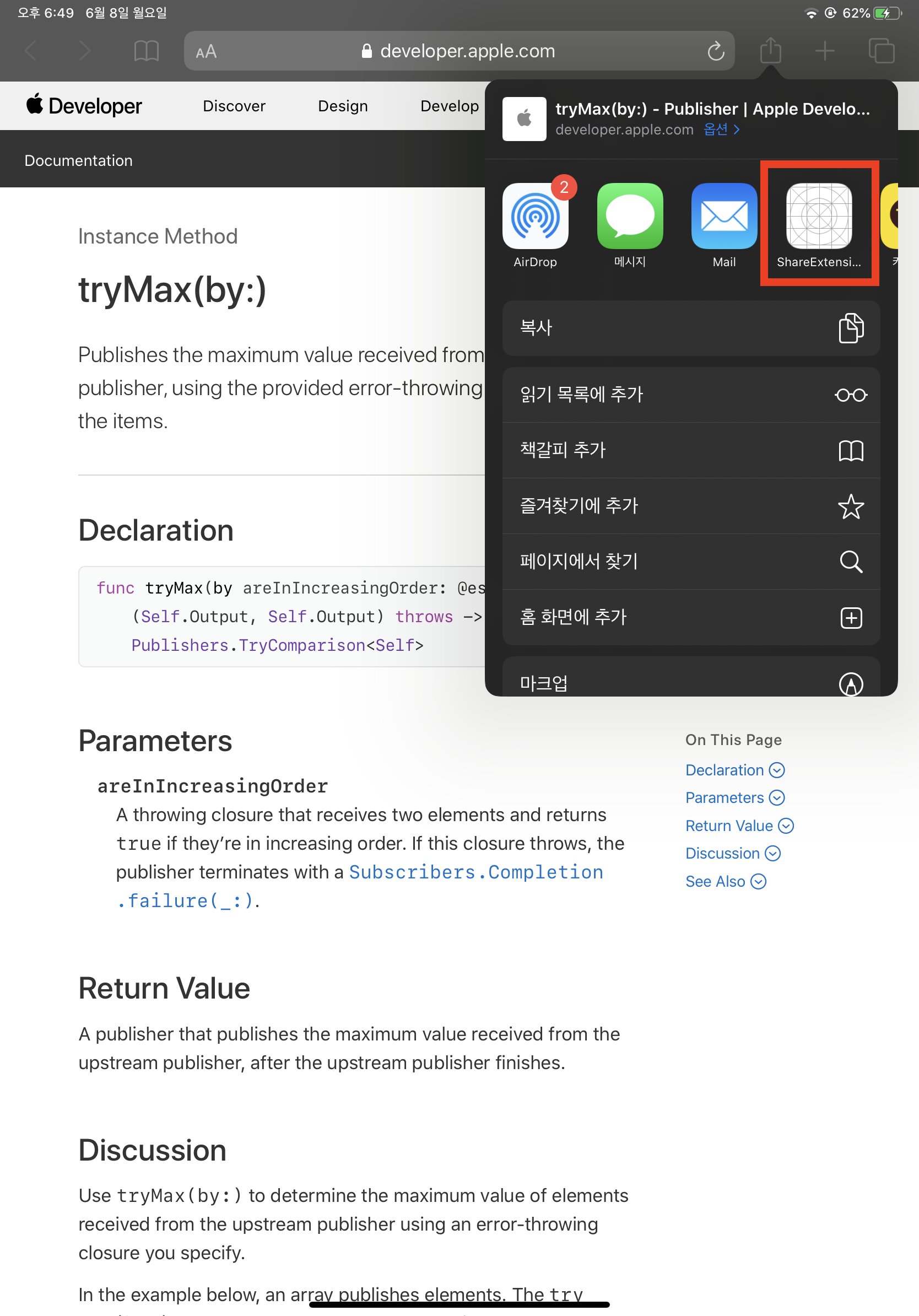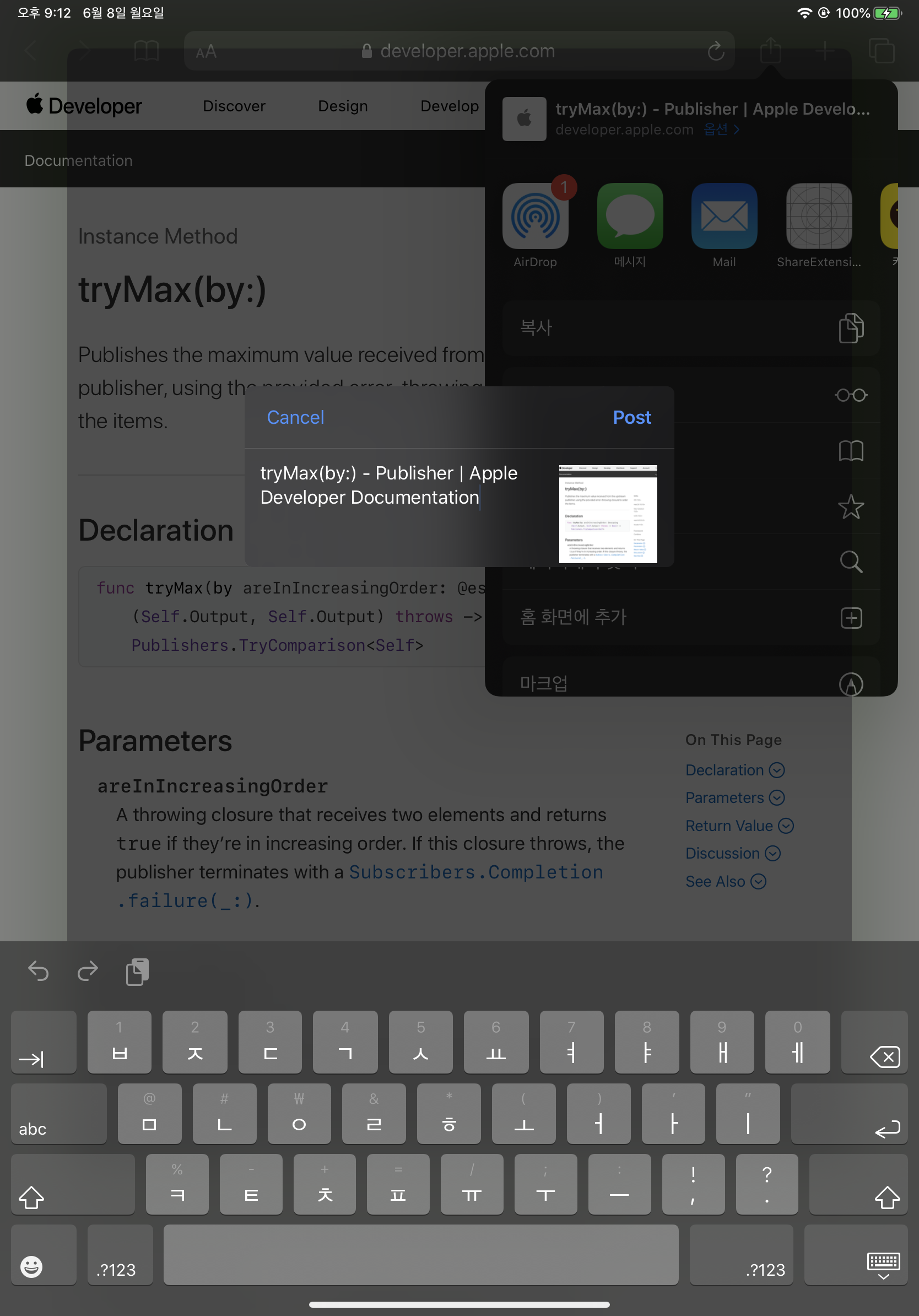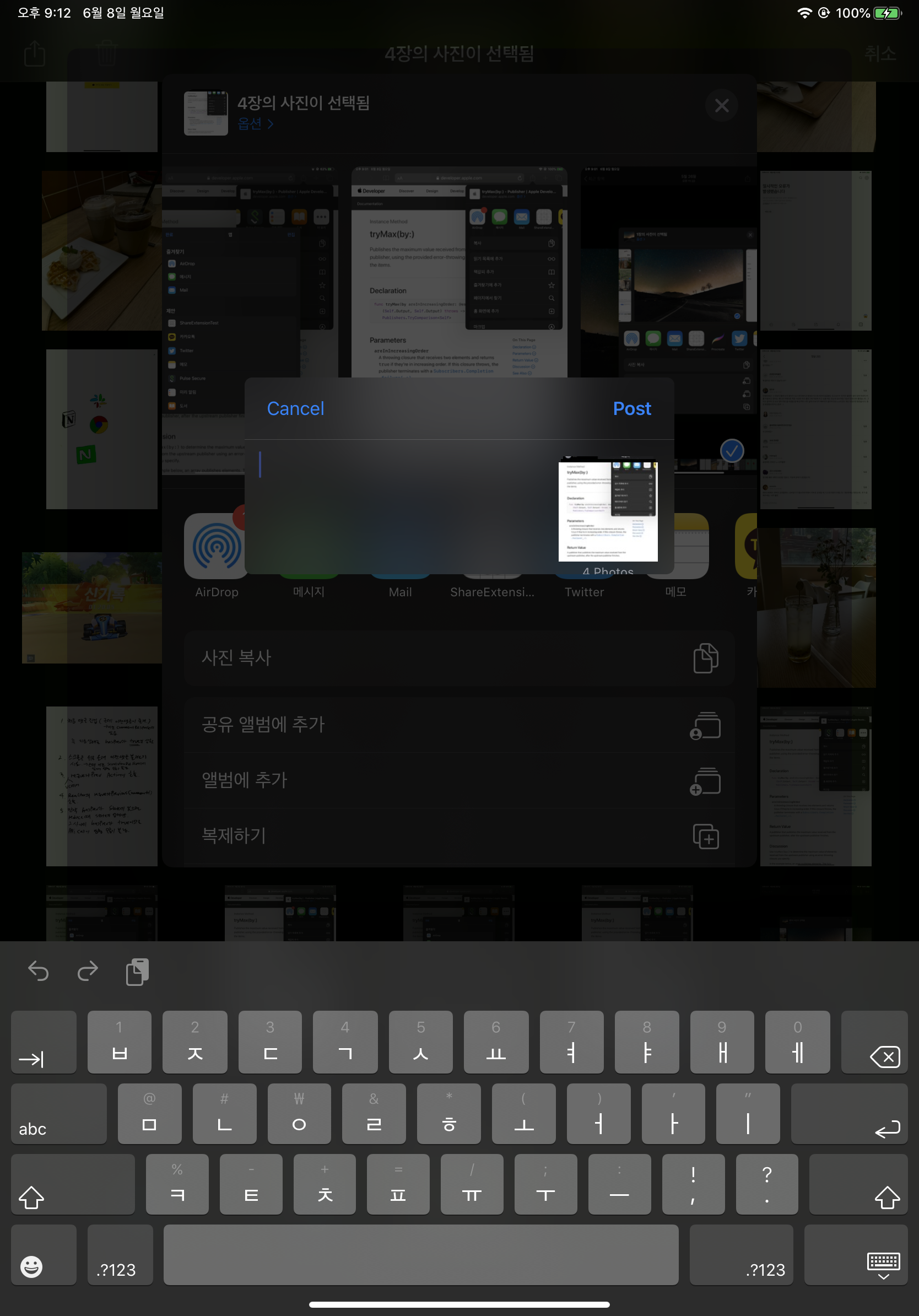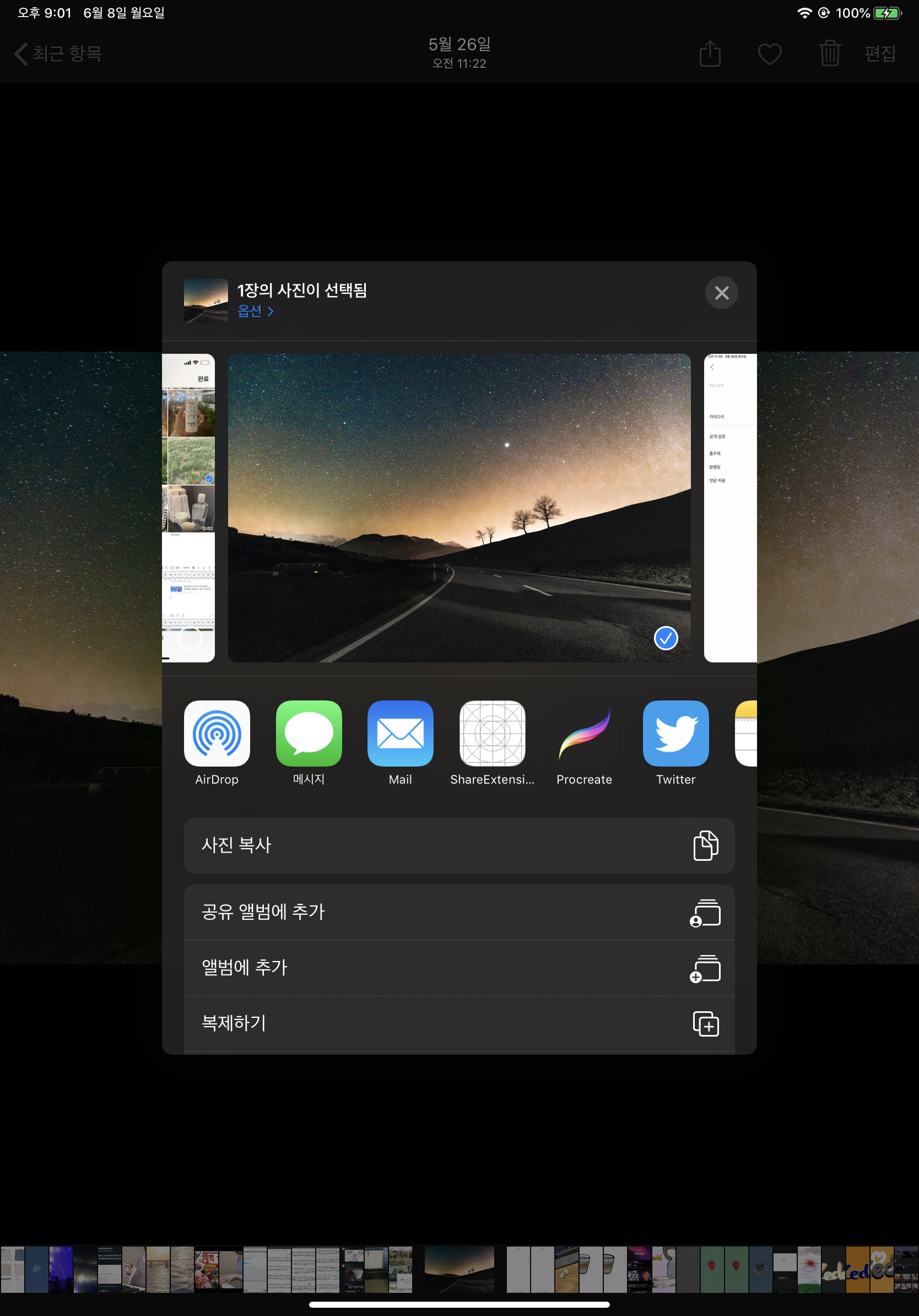 그리고 다시 사파리에 가서 공유를 눌러보면