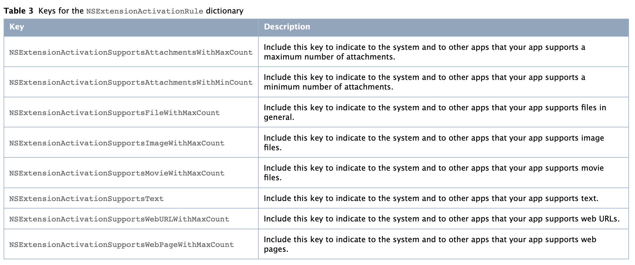 그리고 "NSExtensionActivationRule"을 봐주세요.