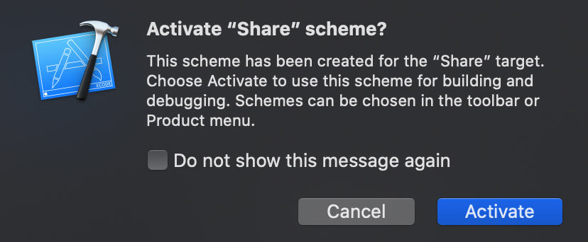 Q : "너가 방금 만든 Share Extension Target 이름"스킴을 activate하겠ㄴ,ㅣ..?