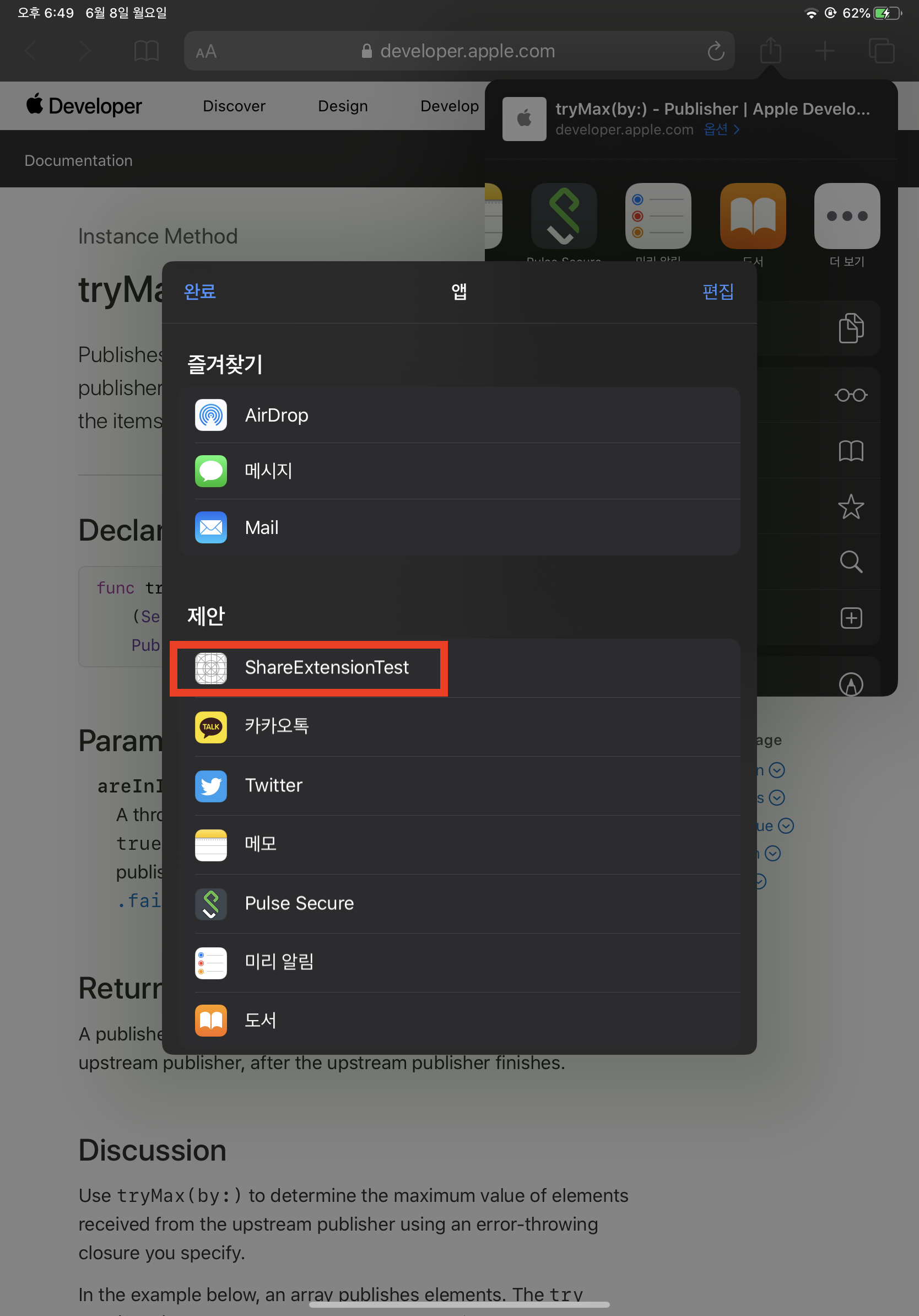 아까 Share Extension을 추가했으니
