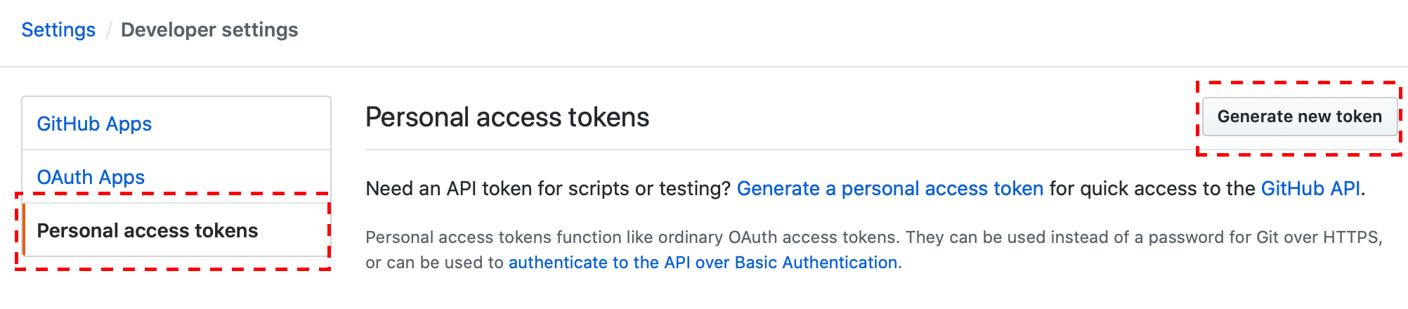 Personal access tokens에 가셔서 Generate new token을 눌러줍시다.