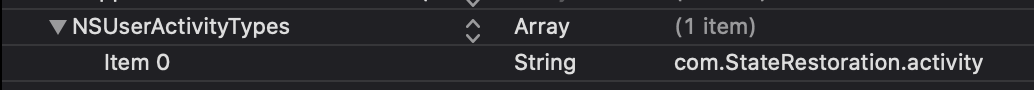 가장 먼저해야 할 작업은 Info.plist에 NSUserActivityTypes을 추가해주는 겁니다.