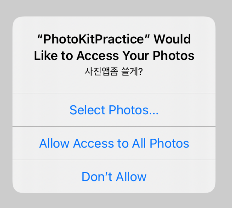 PHPicker의 더 대단한 점은, 따로 권한 요청 팝업이 뜨지 않는다는 점..입니다.