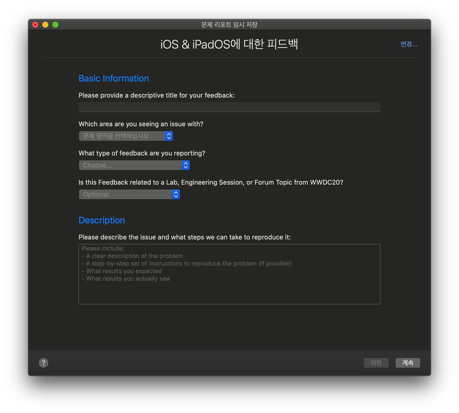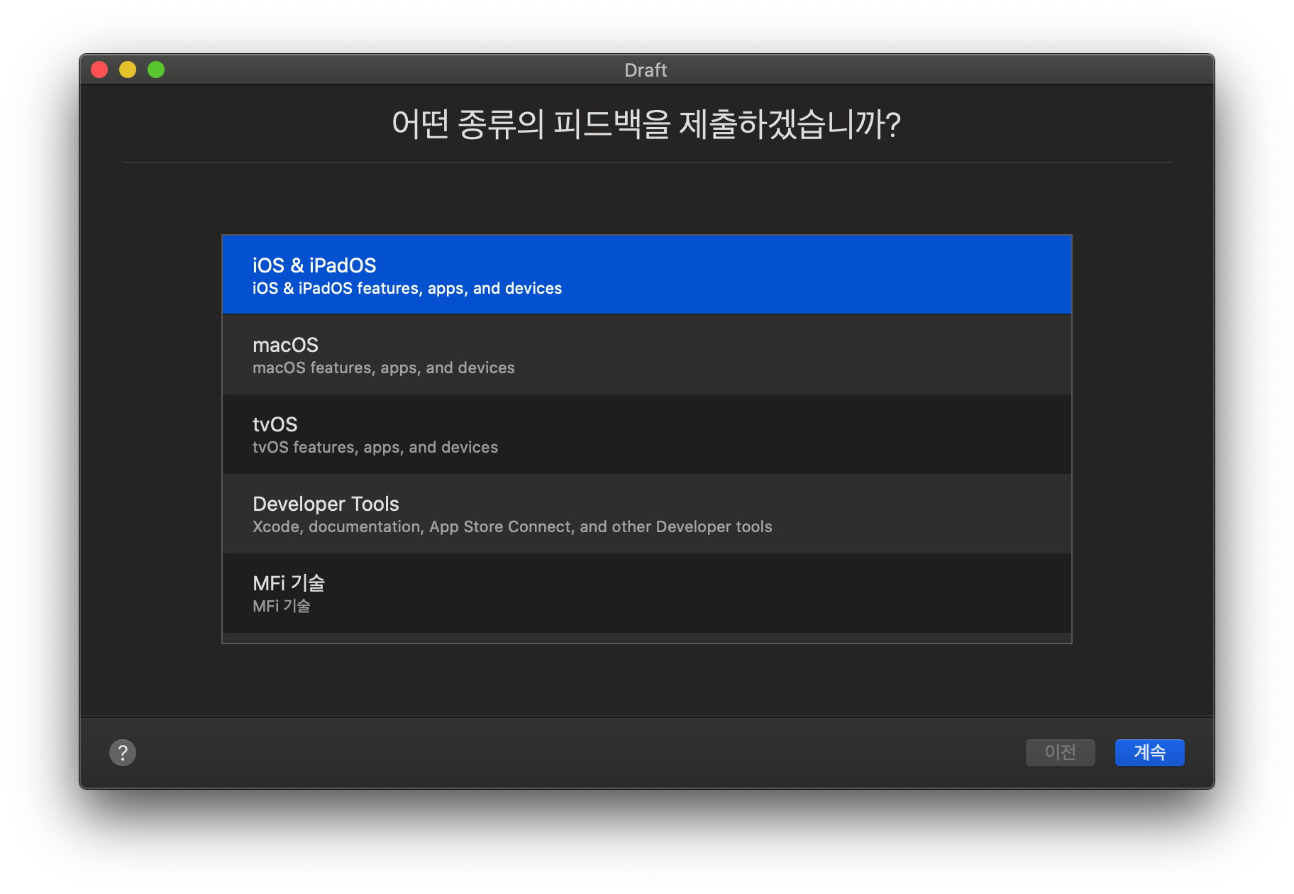 오늘은 Feedback Assistant이란게 있고, 이 Tool을 어떻게 사용하는지만 알면 됩니다.