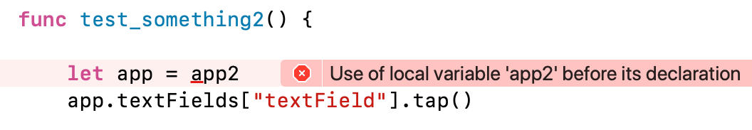 방금 저희가 한것처럼 이렇게 XCUIApplication을 예쁘게 초기화 할 때도 있고