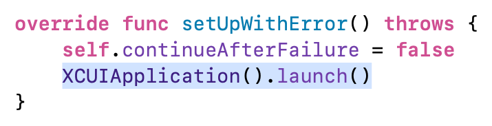 UITest는 일단 앱이 실행되어야 하잖아요!? setUpWithError에 앱을 실행하는 코드를 넣어주겠습니다.
