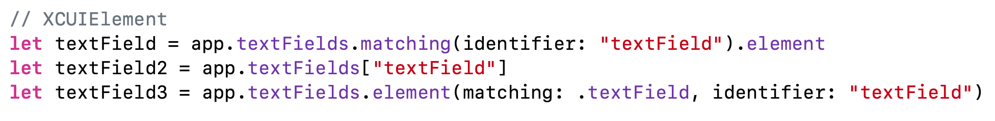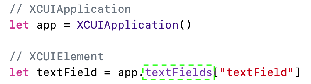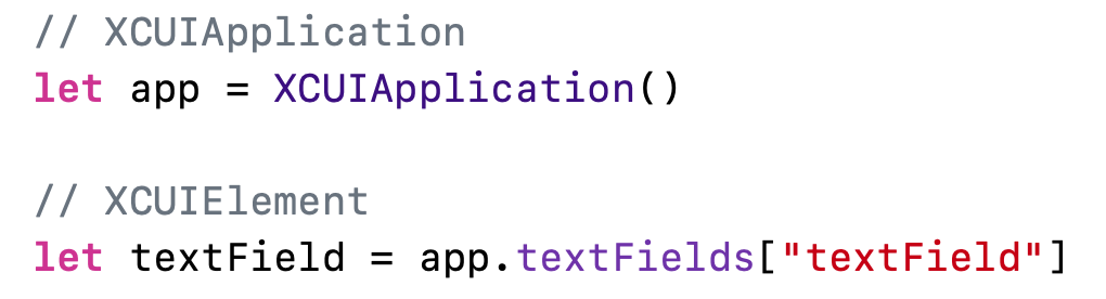 app이 XCUIApplication이고, textField가 XCUIElement타입입니다.
