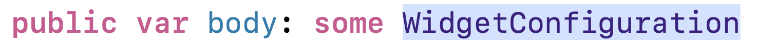 1. Configuration. 위젯을 식별하며, 위젯의 Content를 표시하면 SwiftUI View를 정의.