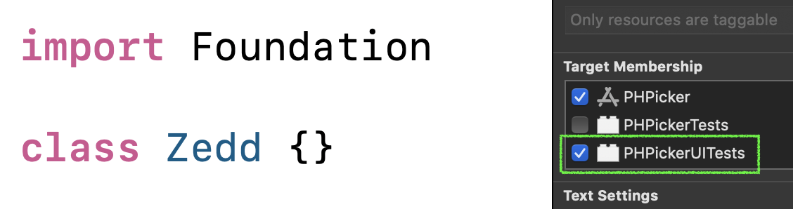 Undefined symbols for architecture x86_64: "type metadata accessor for PHPicker.Zedd", referenced from: PHPickerUITests.PHPickerUITests.testExample() throws -> () in PHPickerUITests.o "PHPicker.Zedd.__allocating_init() -> PHPicker.Zedd", referenced from: PHPickerUITests.PHPickerUITests.testExample() throws -> () in PHPickerUITests.o ld: symbol(s) not found for architecture x86_64 clang: error: linker command failed with exit code 1 (use -v to see invocation)