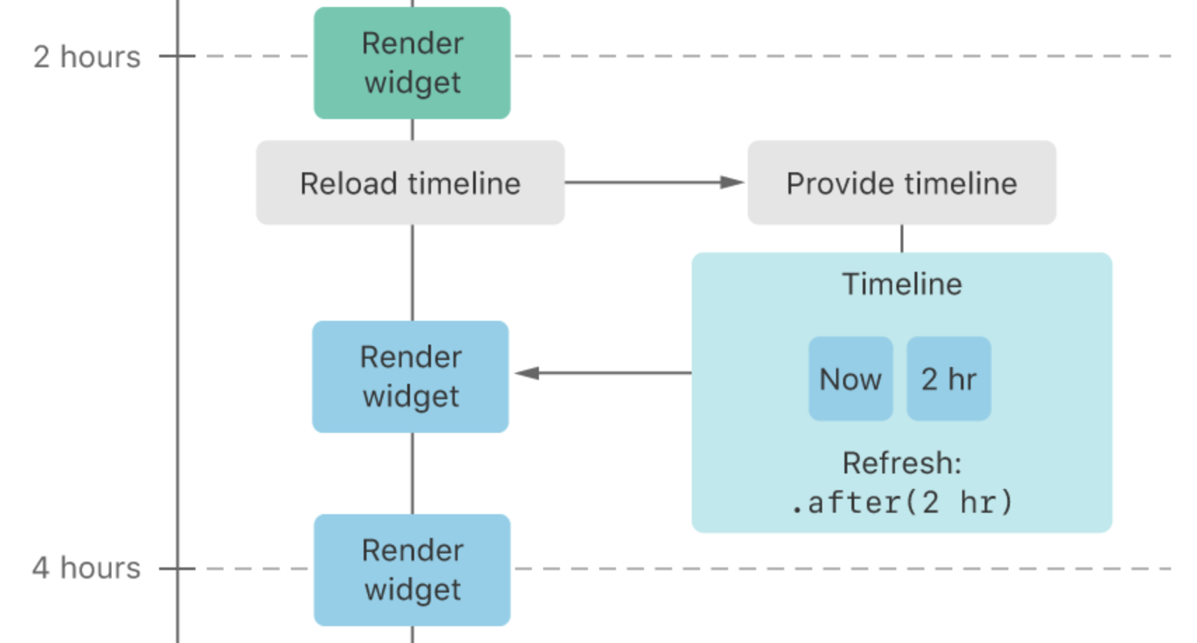 처음에 Widget을 rendering하기 위해 Provider에게 timeline을 요청하는 것을 볼 수 있죠.