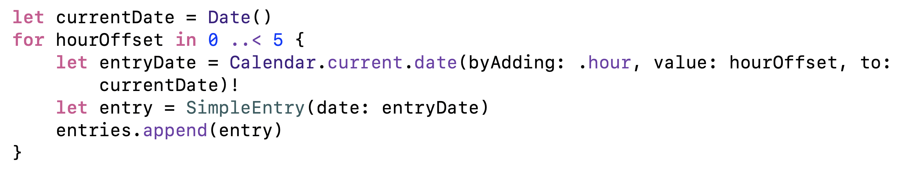 현재 상태 및 Widget상태가 변경 될 미래 날짜가 포함된 타임라인 엔트리 배열 줘봐