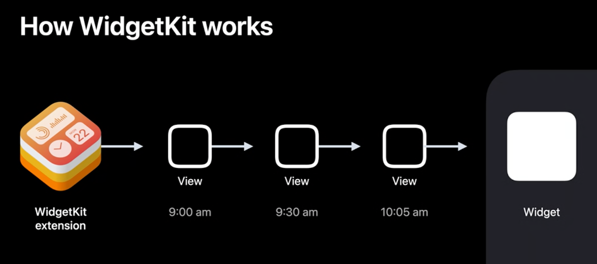 WidgetKit은 그걸 보고 그 시간이 되면 그 때 나와야 할 view를 Widget에 전송한다고 해요.
