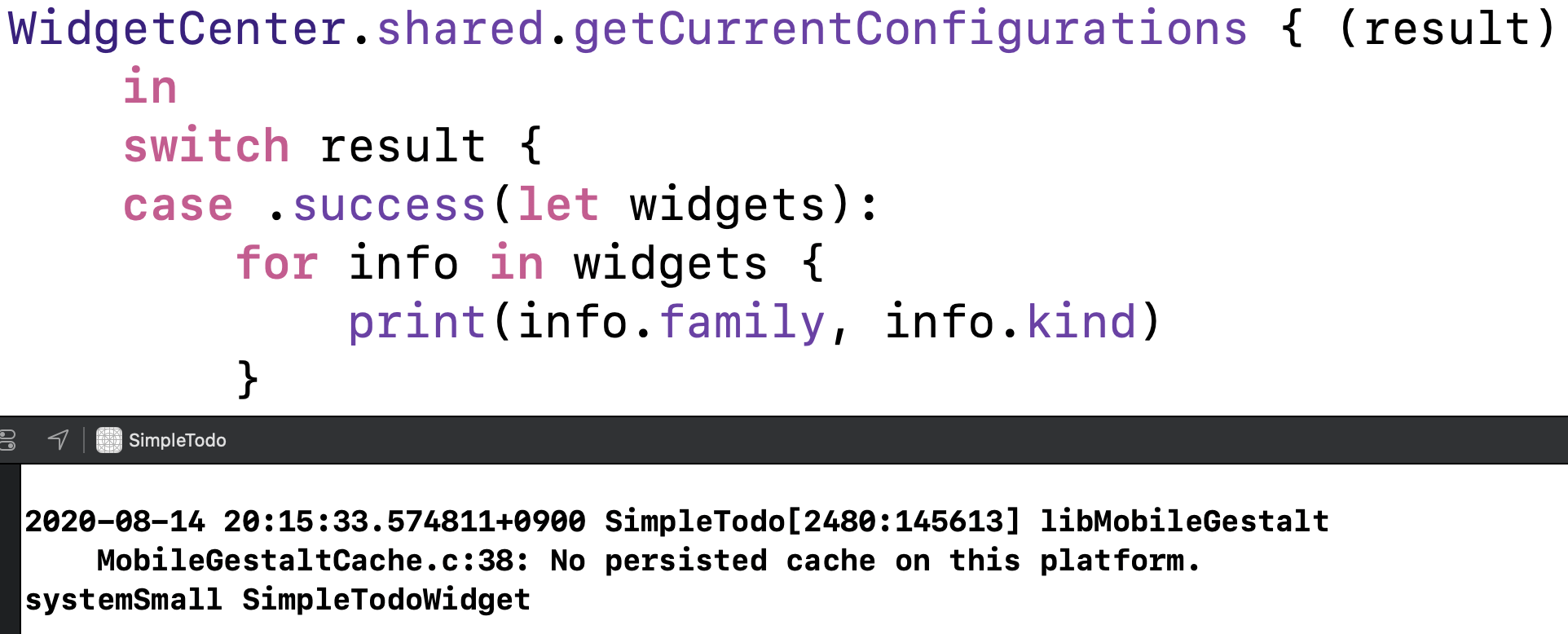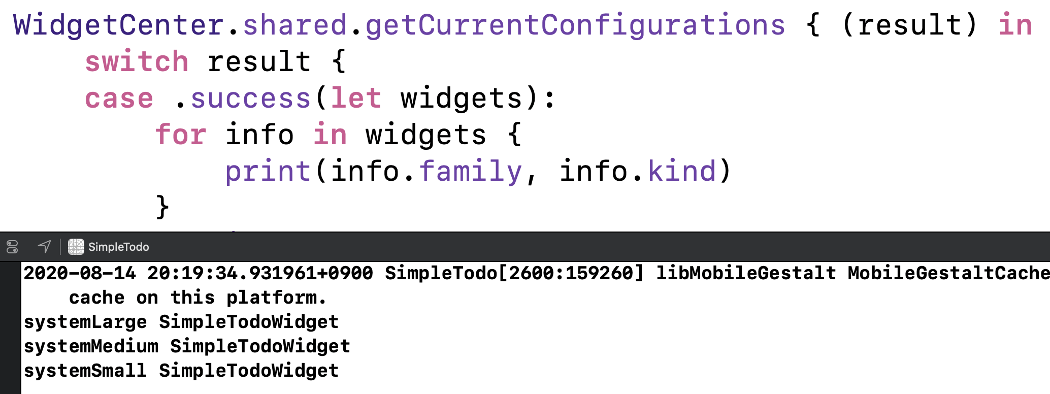 그럼 본격적으로 getCurrentConfigurations(_:)을 사용해봅시다.
