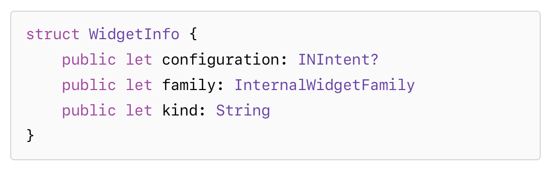 아무튼 이 WidgetCenter를 통해서..지금 유저가 설정한 Widget들에 대한 정보를 가져올 수 있는 것 같아요.