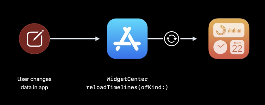 WidgetKit은 앱이 WidgetCenter를 사용하여 WidgetKit에 새 타임라인을 요청하도록 지시 할 때 까지