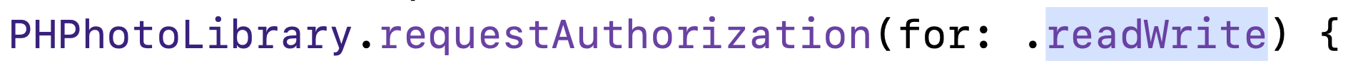 PHPhotoLibrary.requestAuthorization(for: .readWrite) { authorizationStatus in