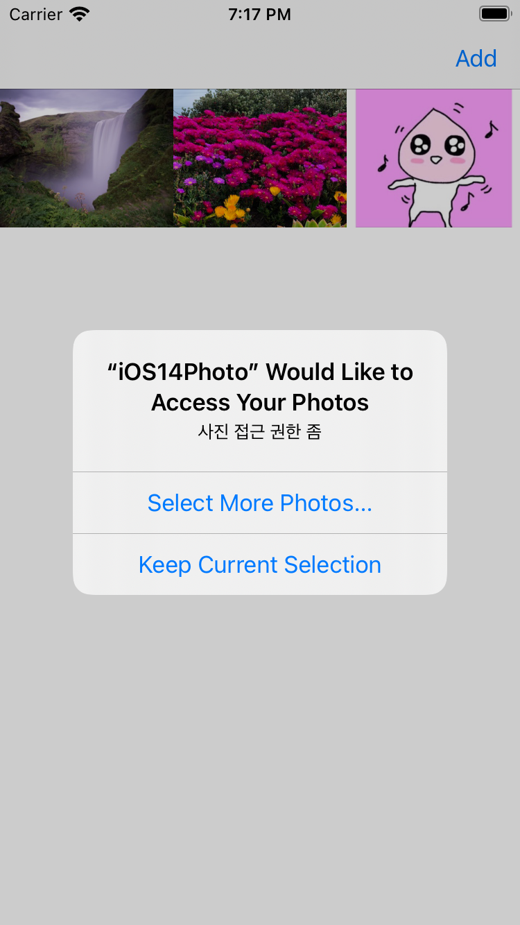 더 많은 사진을 선택하겠다고 하면 다시 PHPicker를 열어줍니다.