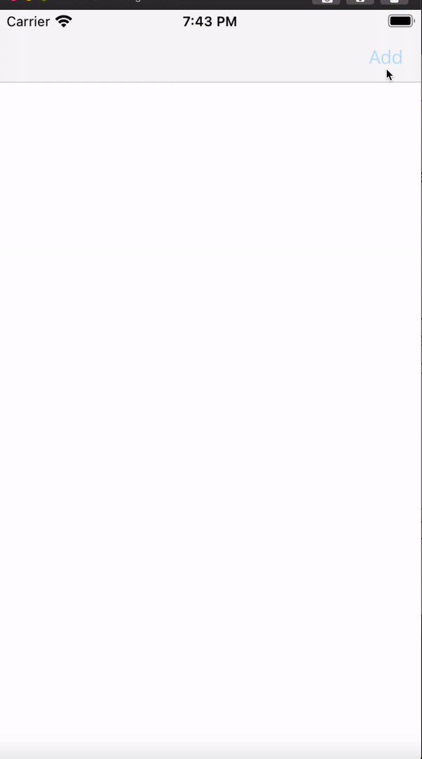 자 앱을 껐다 켜고, 다시 Add버튼을 눌러보겠습니다.