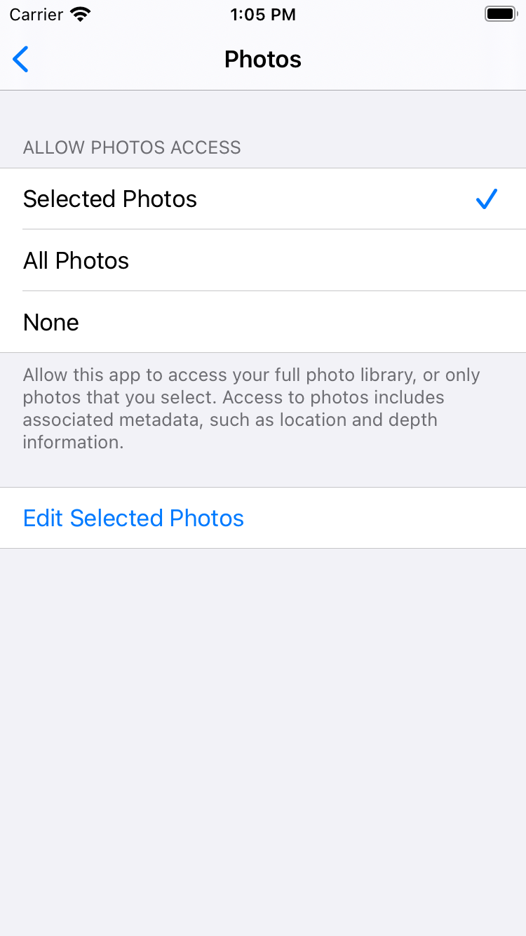 설정 > 사진 권한에 가서 내가 선택한 이미지를 편집할 수 있습니다.