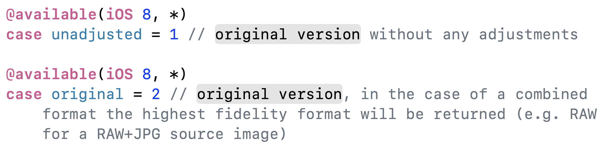 예를 들어 RAW 및 JPEG 데이터가 모두 포함 된 자산의 경우 Photos는 RAW 데이터를 반환.