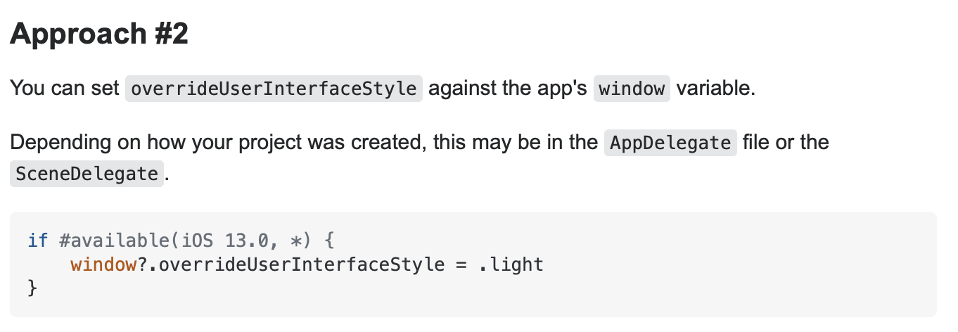 A : 모르겠음......info.plist에서 지정하면 앱 전체를 그 모드로 딱 지정!!! 해버리는거라 window의 하위로 붙는 viewController의 interface style override과정이랑 뭔가 다를 것 같긴 한데..정확한 이유는 모르겠다.