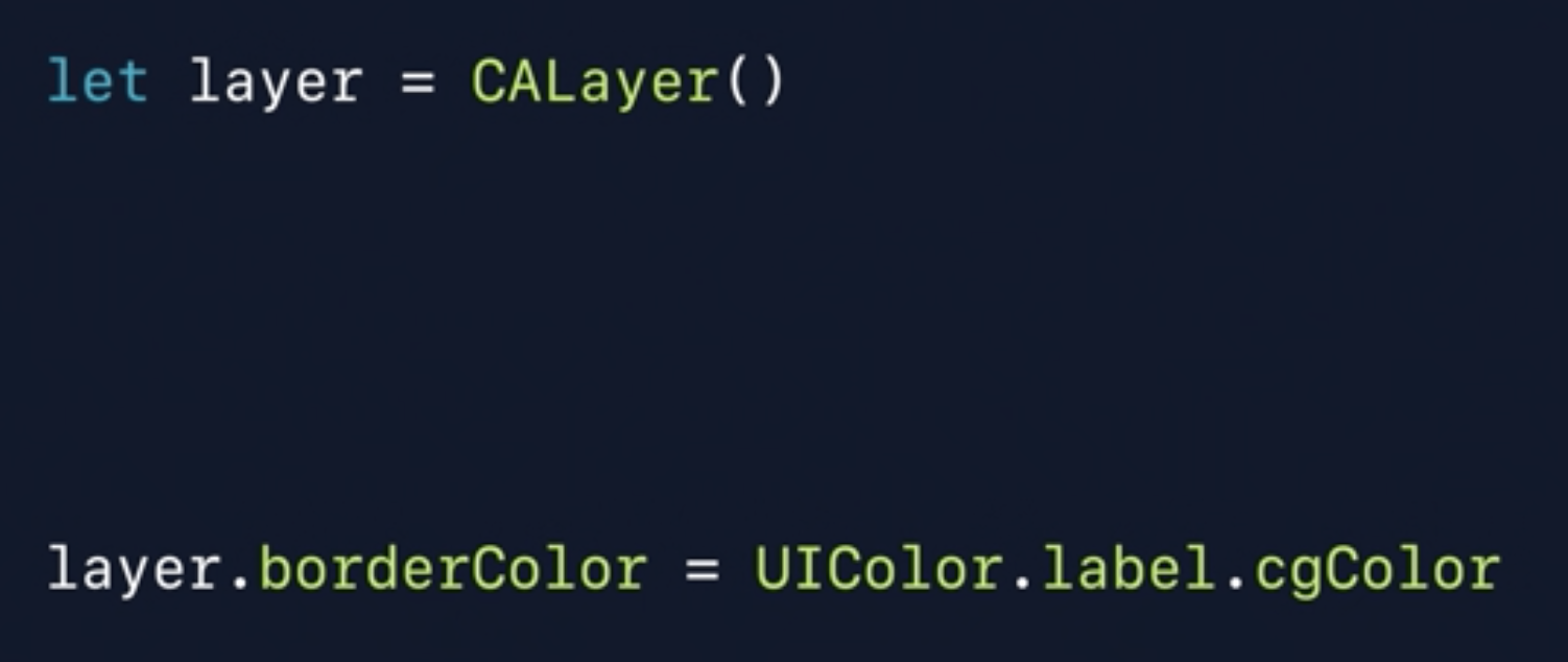CALayer및 CGColor와 같은 Lower-level class들은 dynamic color를 이해하지 못한다고 한다. dynamic color는 UIKit 개념이라고..