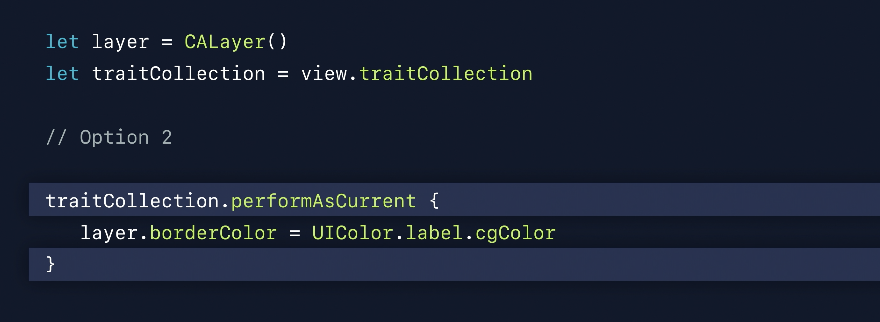 traitCollection에서 performAsCurrent를 호출하는 방법이다.