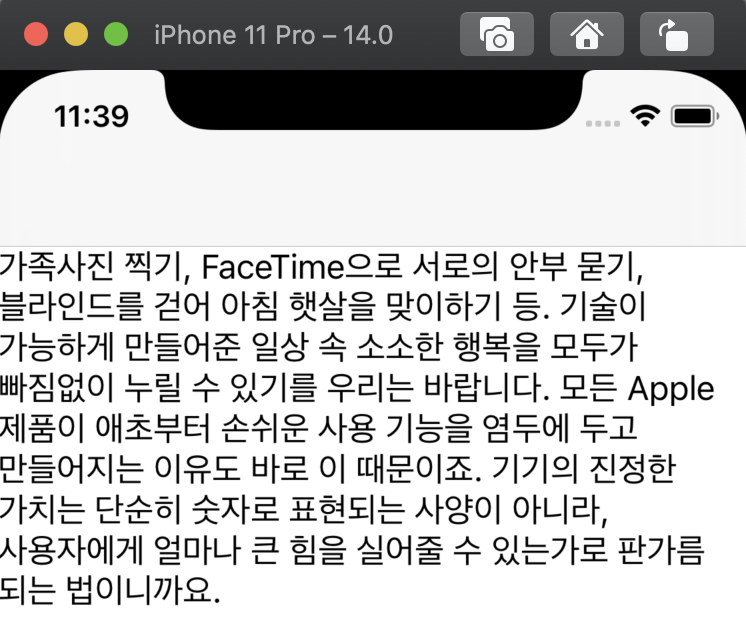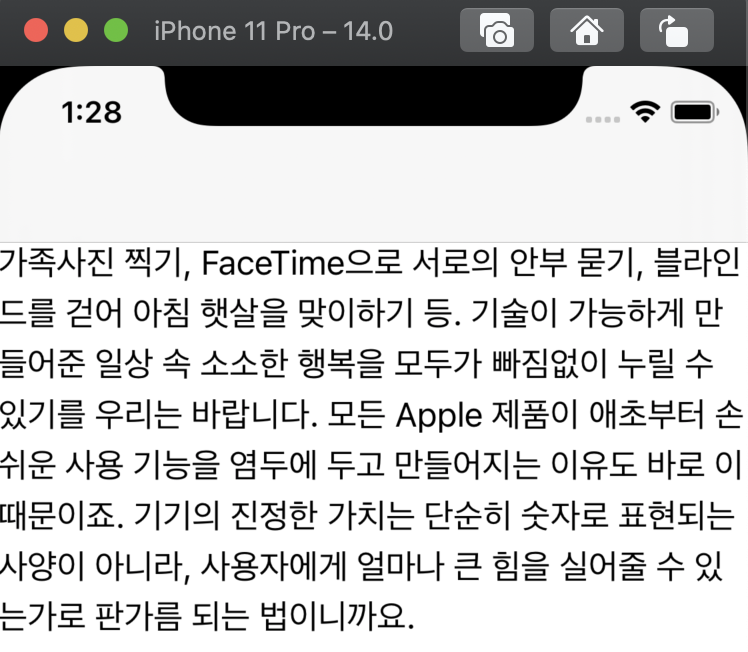 바로 이거다. 위쪽을 보면 알겠지만, iOS 14.0 시뮬레이터이다. 그런데 지금