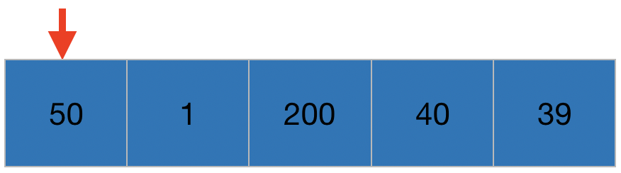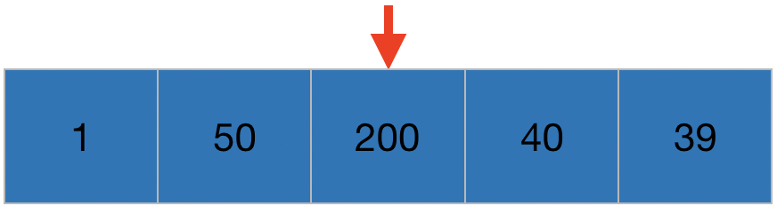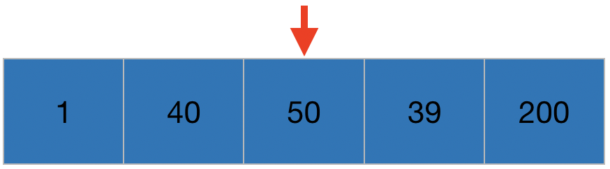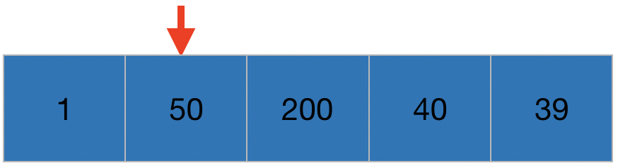 방금 40과 200을 바꿨잖아요? 그래서 1, 50, 40, 200순이 되었지만, 40앞에 50이 있는 상황입니다.