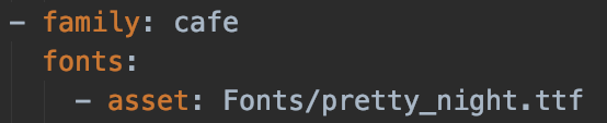 family를 임의로 cafe라고 짓고, fonts에 위에서 추가한 폰트 Path를 넣어줬어요!