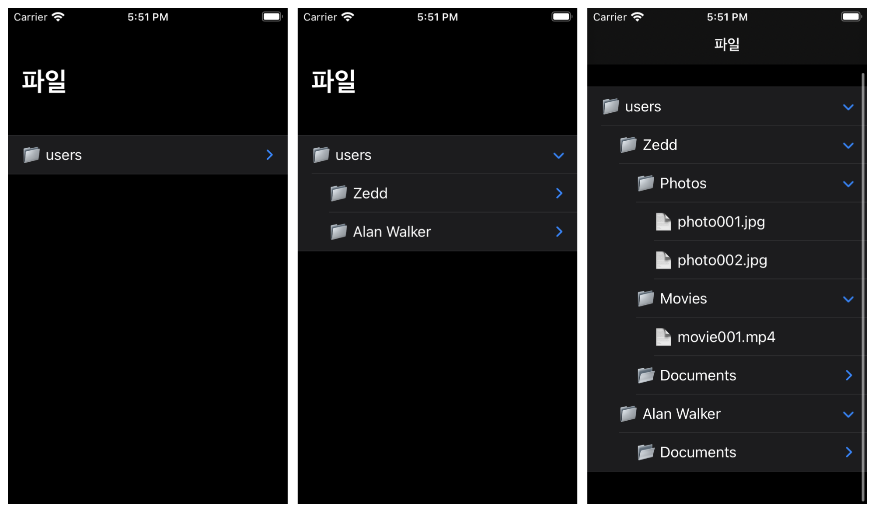 나는 그냥 데이터 구조만 넣어준거고, OutlineGroup이 그 구조에 맞게