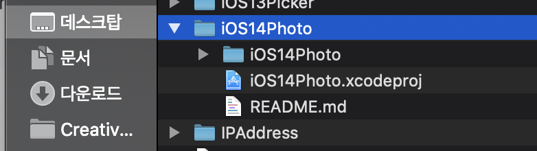 있다면 폴더 아이콘과 함께 폴더 이름을 보여줍니다.