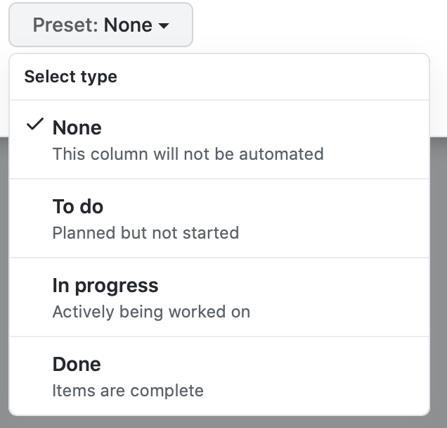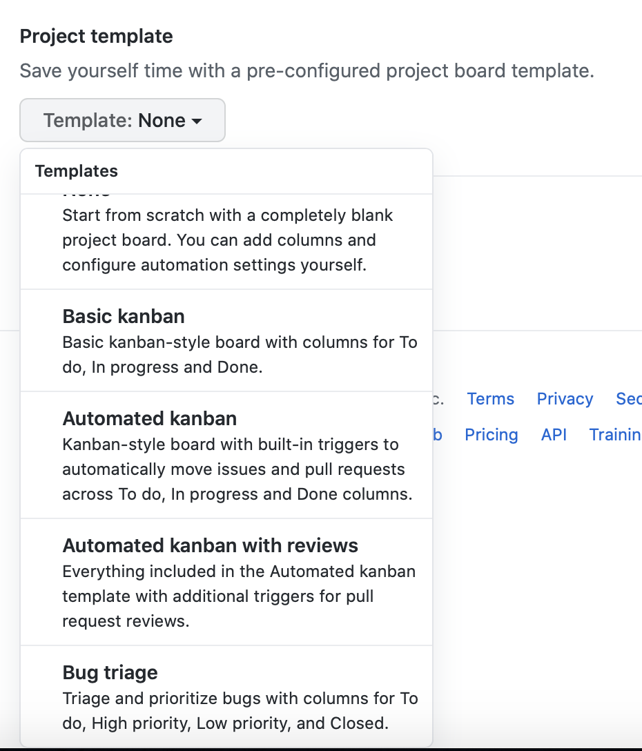 None은 완전히 빈 프로젝트 보드로 시작하는 설정입니다.