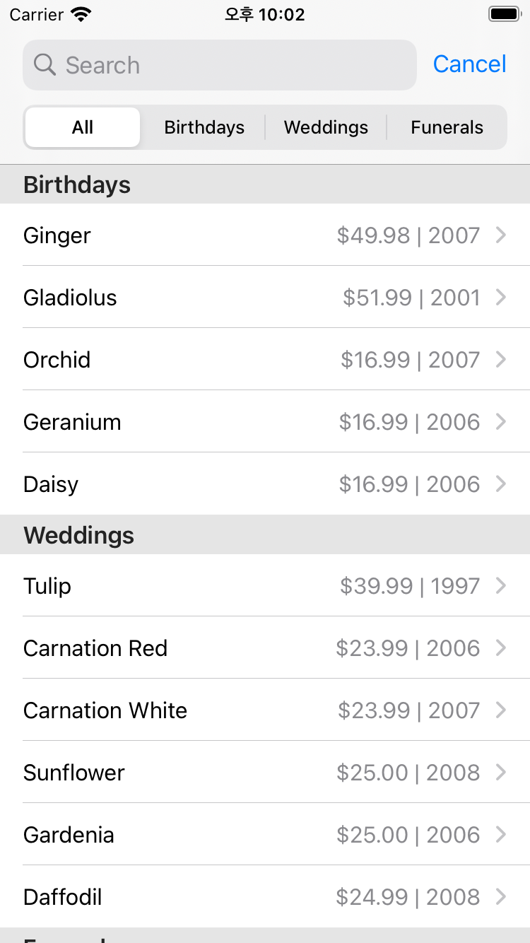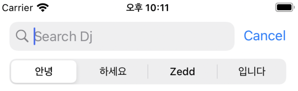 위 애플 예제를 보면, SearchBar하단의 SegmentedControl이 보이는데요. 이를 ScopeBar라고 하는 것 같습니다.