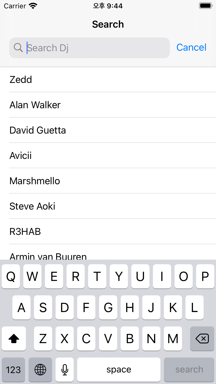 유려한 애니메이션과 함께 SearchBar가 활성화가 되면 자동으로 cancel이 보여지네요.