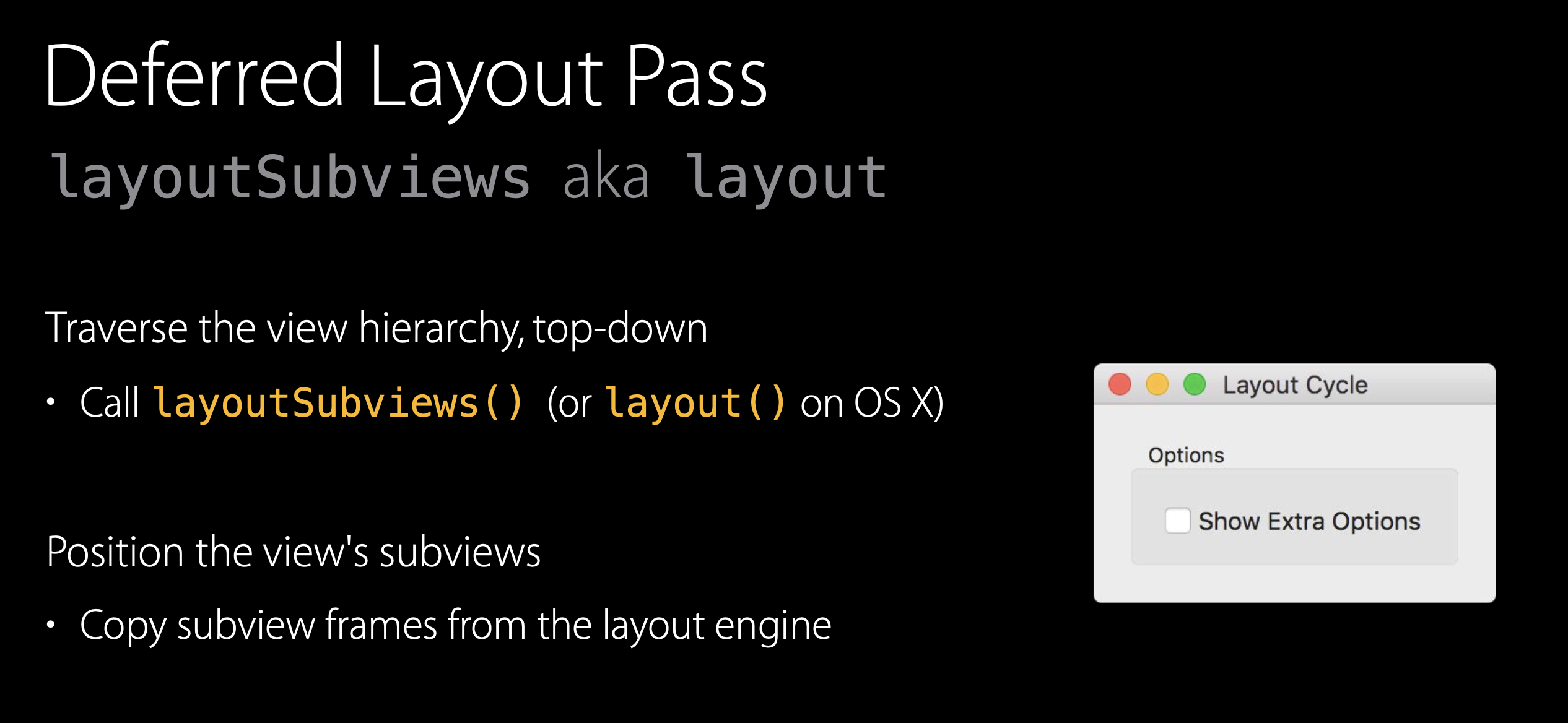 setNeedsLayout()또는 setNeedsUpdateConstraints()를 호출하여 own deferred layout pass을 예약할 수 있습니다.