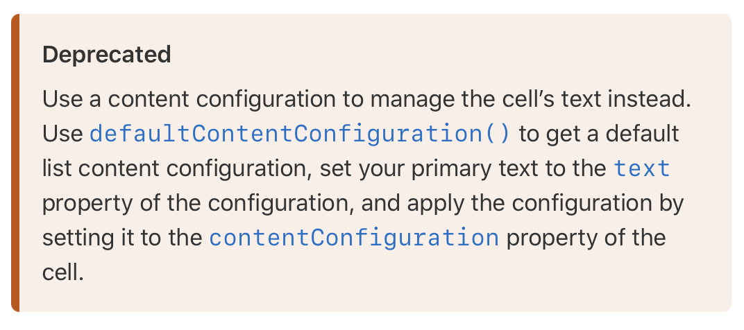 textLabel과 detailTextLabel프로퍼티가 있는데요. 이 역시 iOS 14에서 deprecate되었습니다.