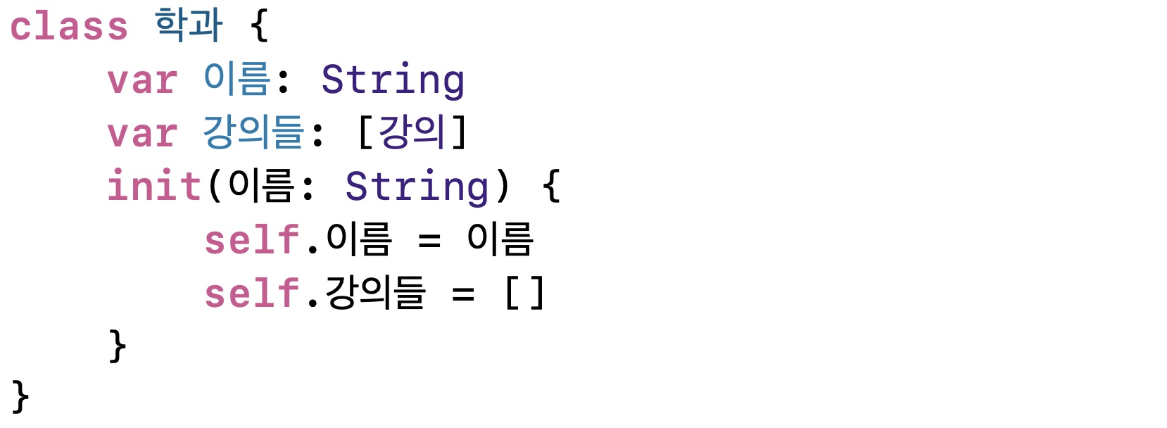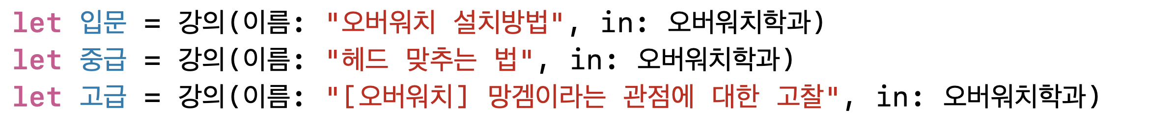애플 예제인데요. 제가 한글로만 바꿔봤습니다. (더 헷갈리시는거 아니겠죠..)