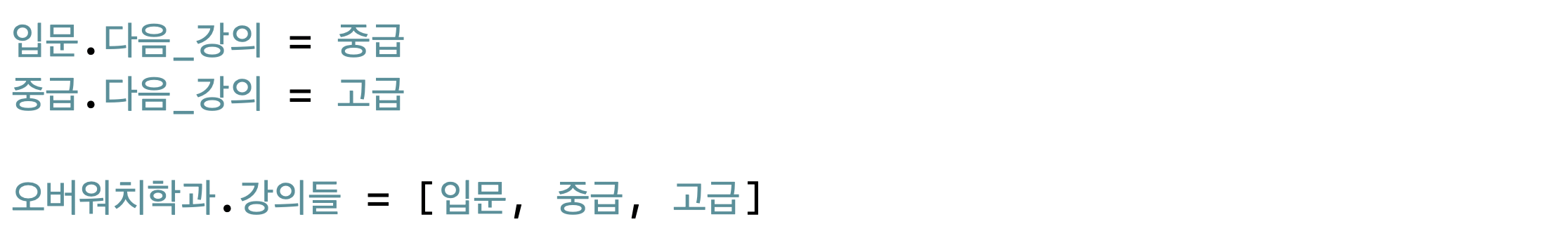 코드에서 볼 수 있다시피, 고급의 다음_강의는 nil입니다.