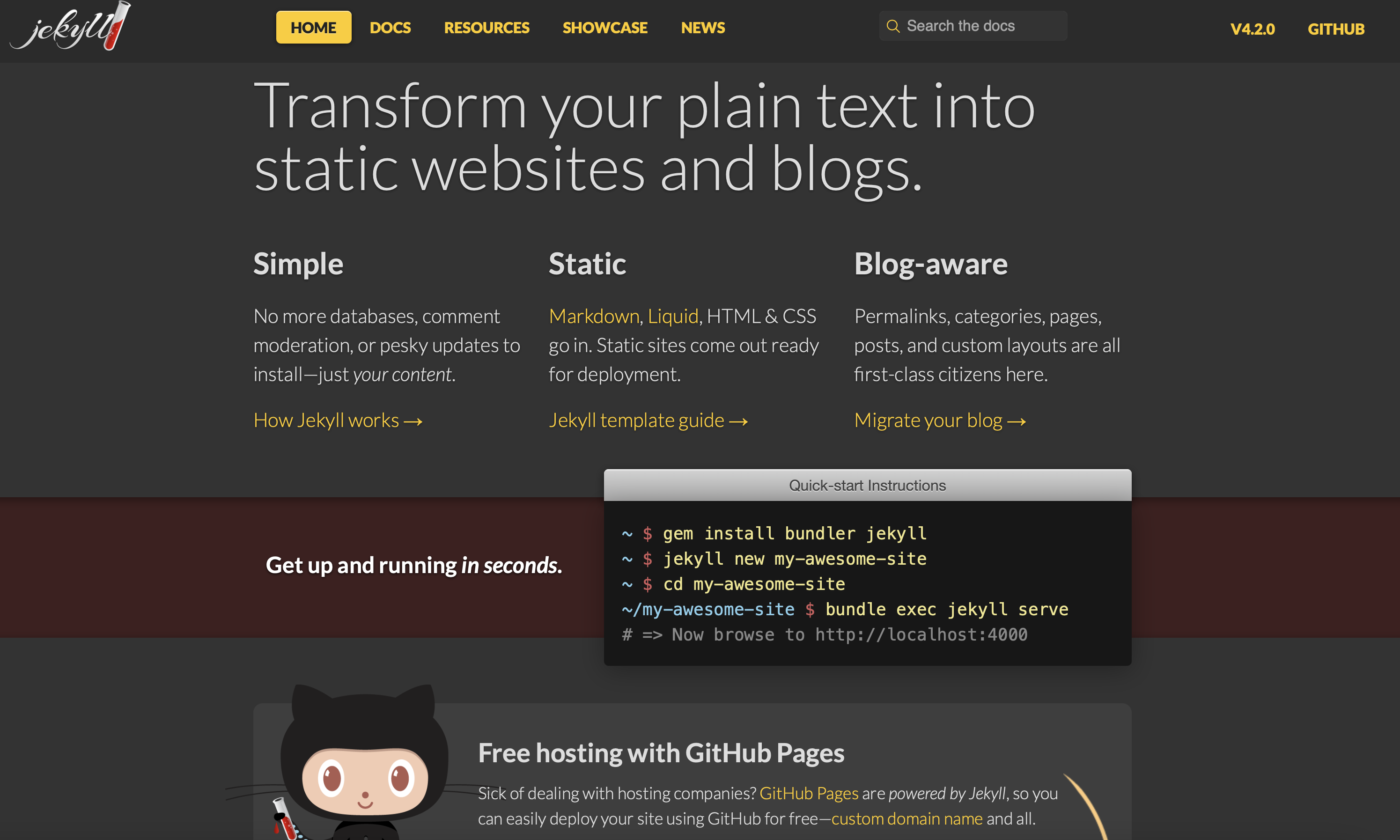 과연 Jekyll의 공식 홈페이지는 얼마나 예쁠까요!!!